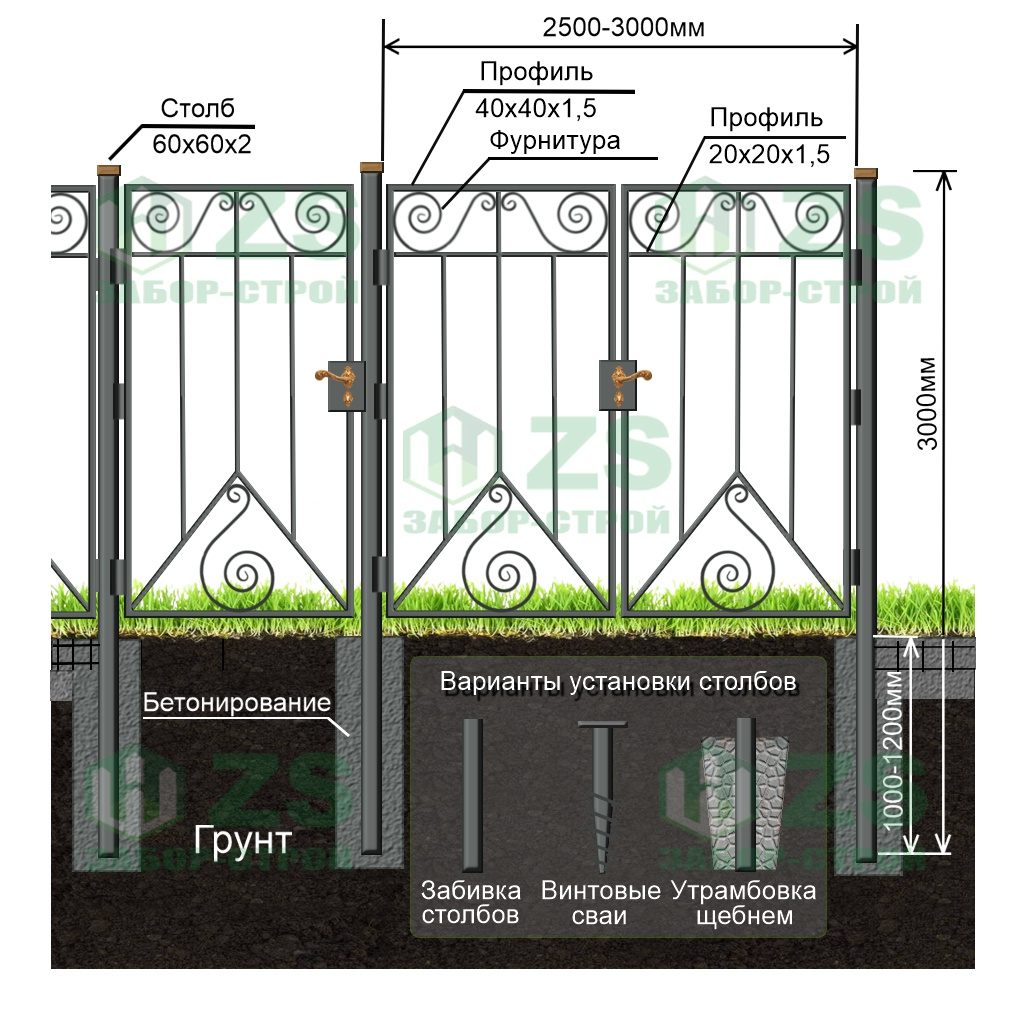 Конструкция распашных сварных ворот с калиткой: