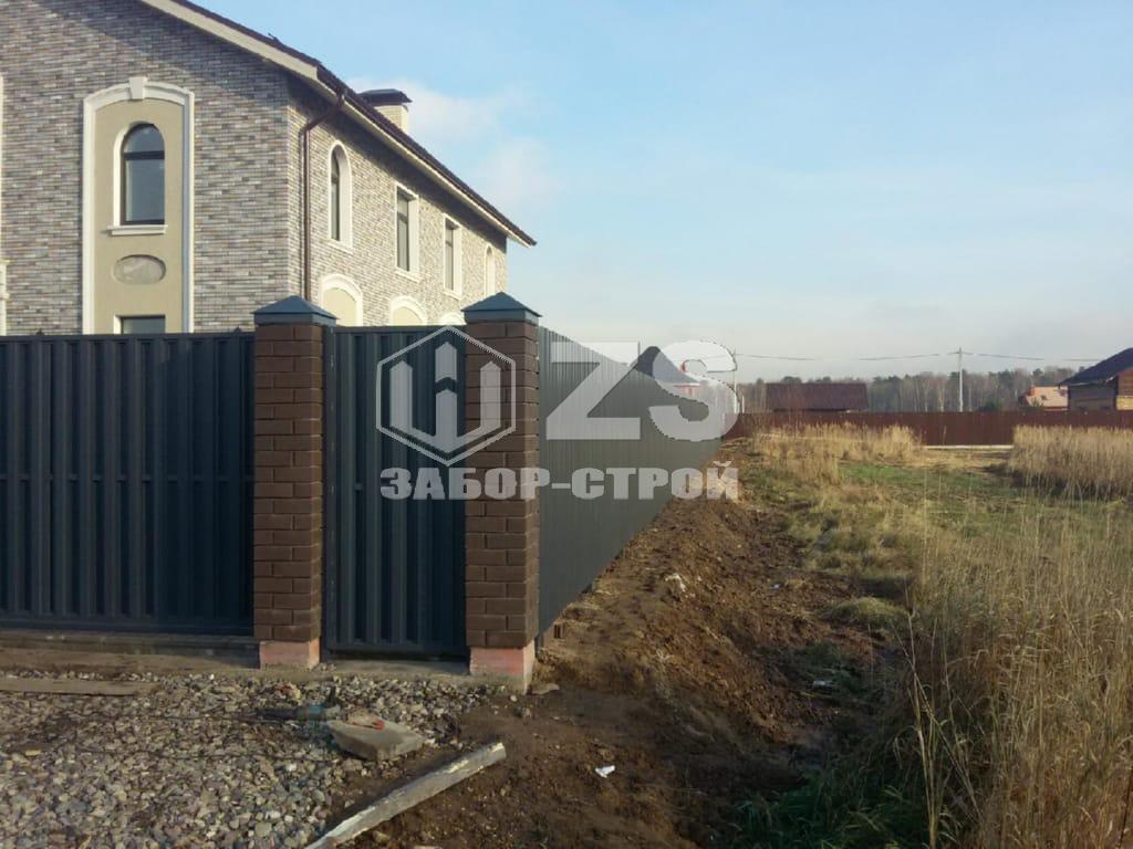 Ленточный с кирпичными столбами