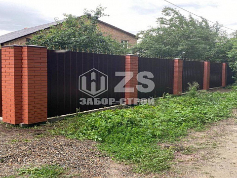 Ленточный с кирпичными столбами