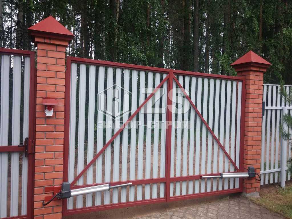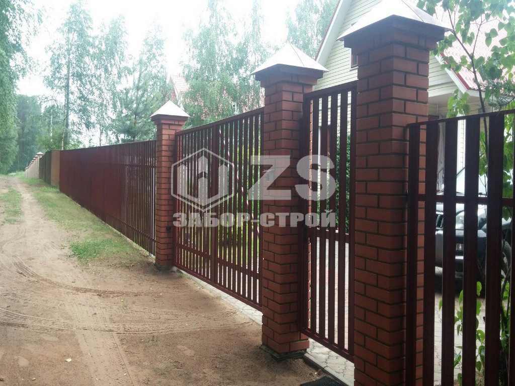 - Забор с кирпичными столбами из евроштакетника 40 метров